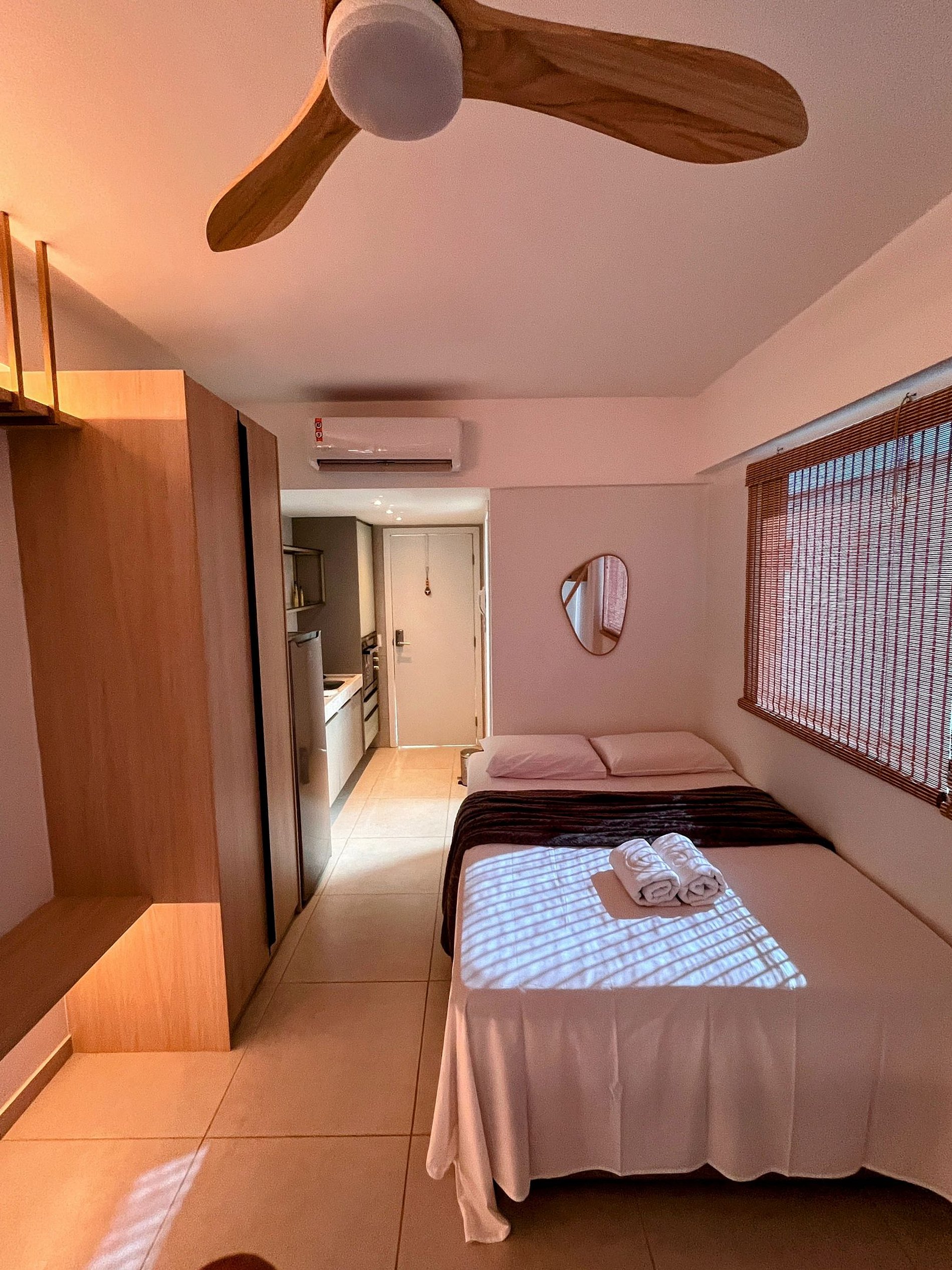 Compacto, aconchegante e novinho, o espaço foi pensado para quem busca renovar as energias e relaxar, seja na piscina privativa da varanda ou na piscina do rooftop do prédio.