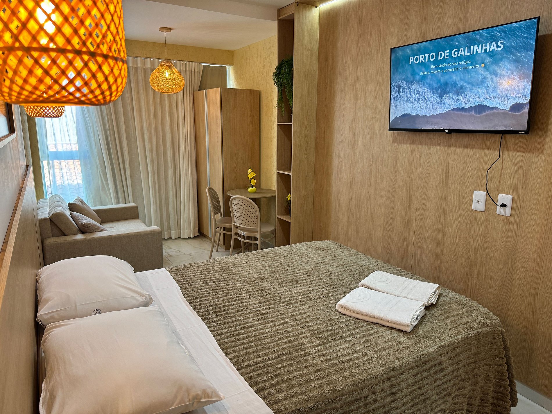 Neste estúdio noderno e bem equipado para suas necessidades, você vai encontrar praticidade e conforto aliados a uma localização excelente. Equipado com amenidades e utilidades pensadas para suas necessidades básicas e conforto, nosso espaço foi preparado com carinho para te oferecer um descanso tranquilo em um espaço organizado e prático. A piscina com vista no Rooftop é o detalhe final que vai abrilhantar a sua experiência em Porto de Galinhas.